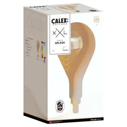 Die Calex XXL Splash Gold LED E27 Fadenlampe 3W 250lm- 822 Extra Warmweiß | Dimmbar ist eine effiziente E27 LED-Lampe mit Retrodesign und der perfekte Ersatz für Ihre konventionellen 30W Lampen mit E27. Zudem strahlt sie Licht in der Farbtemperatur 2200K - Extra Warmweiß aus und punktet durch eine lange Lebensdauer.