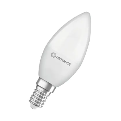 Die Ledvance Classic LED E14 Kerze Matt 4.9W 470lm - 840 Kaltweiß | Ersatz Für 40W ist eine effiziente E14 LED-Lampe und der perfekte Ersatz für Ihre konventionellen 40W Lampen mit E14-Sockel. Zudem strahlt sie Licht in der Farbtemperatur 4000K - Kaltweiß aus und punktet durch eine lange Lebensdauer.