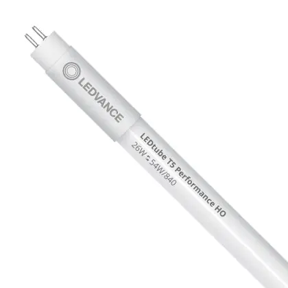 Die Mehrfachpackung 10x Ledvance LED Röhre T5 Performance (HF) High Output 26W 4000lm - 840 Kaltweiß | 145cm - Ersatz Für 49W ist eine effiziente LED-Röhre und der perfekte Ersatz für Ihre konventionelle Leuchtstoffröhre mit 49W und einem G5. Die Röhre hat eine Länge von 1449 mm und einen Durchmesser von 18.5 mm. Zudem strahlt das Produkt Licht in der Farbtemperatur 4000K - Kaltweiß aus und punktet durch eine lange Lebensdauer.