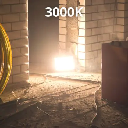 Das LED-Flutlicht kommt mit der Farbtemperatur 3000K - Warmweiß daher. Als Faustregel gilt: Je höher der Kelvinwert, desto natürlicher wirkt das Licht, je geringer desto mehr Rotanteile hat es.