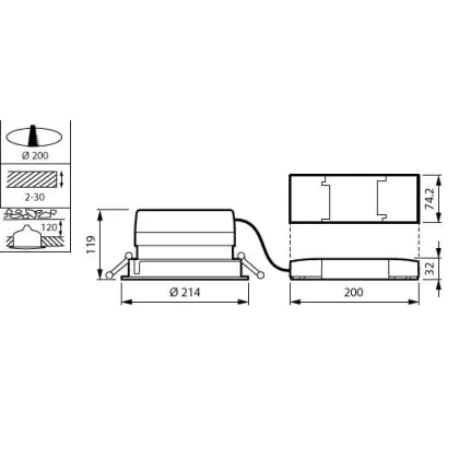 Beschreibung Philips LED Downlight LuxSpace Kompakt tief DN571B VLC-E 36.3W 4400lm 75D - 840 Kaltweiß | 214mm - Aluminium Reflektor - Dali Dimmbar