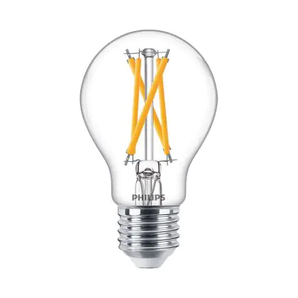 Die Philips MASTER Value LED Glühbirne E27 Birne Klar 5.9W 806lm - 927 Extra Warmweiß | Höchste Farbwiedergabe - Dimmbar - Ersatz für 60W ist eine effiziente E27 LED-Lampe und der perfekte Ersatz für Ihre konventionellen 60W Lampen mit E27-Sockel. Zudem strahlt sie Licht in der Farbtemperatur 2200K - 2700K Dim To Warm aus und punktet durch eine lange Lebensdauer.
