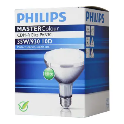 CDM-R Elite sind Kompaktentladungslampen mit integriertem Reflektor aus Aluminium. Sie zeichnen sich durch eine hohe Lebensdauer aus. Die Philips CDM-R Elite 35W 930 E27 PAR30L 30D (MASTERColour) besitzt einen E27 Gasentladungslampensockel. Diese Lampen sind nicht dimmbar.